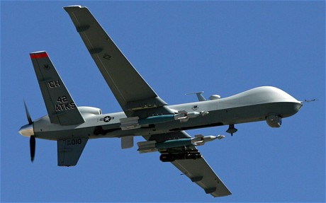 Drones é a designação dos aviões não tripulados, telecomandados como o MQ-9 Reaper que entram no espaço aéreo de estados soberanos para bombardear e matar quem os norte americanos queiram. Estão a ser utilizados no Afeganistão, no Paquistão e recentemente na Líbia, sendo responsáveis por muitos milhares de mortes de civis desses países.