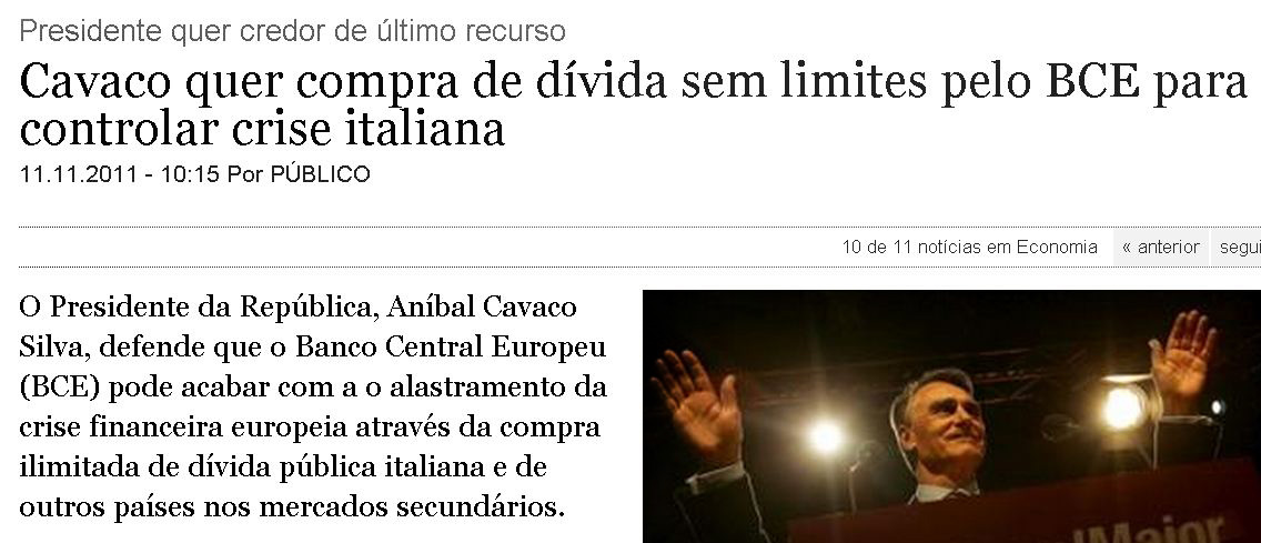 Quando os comunistas criticaram o negócio dos bancos que vão buscar dinheiro ao BCE a 1% e depois emprestam a portugal a mais de 12% Cavaco disse que de nada vale criticar os mercados.