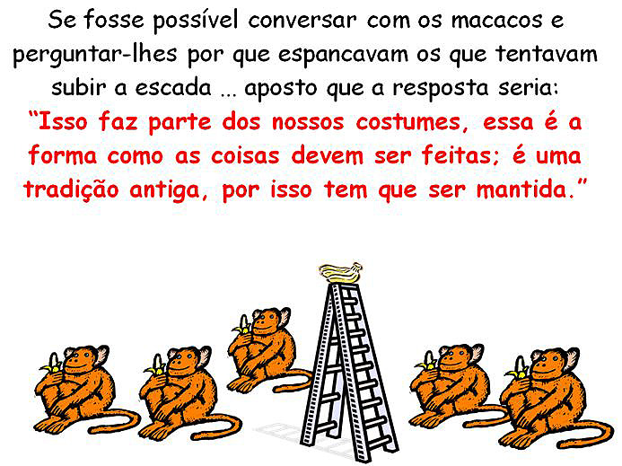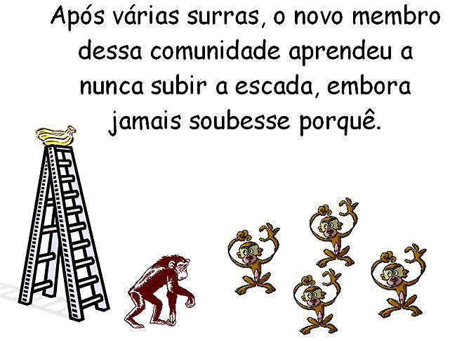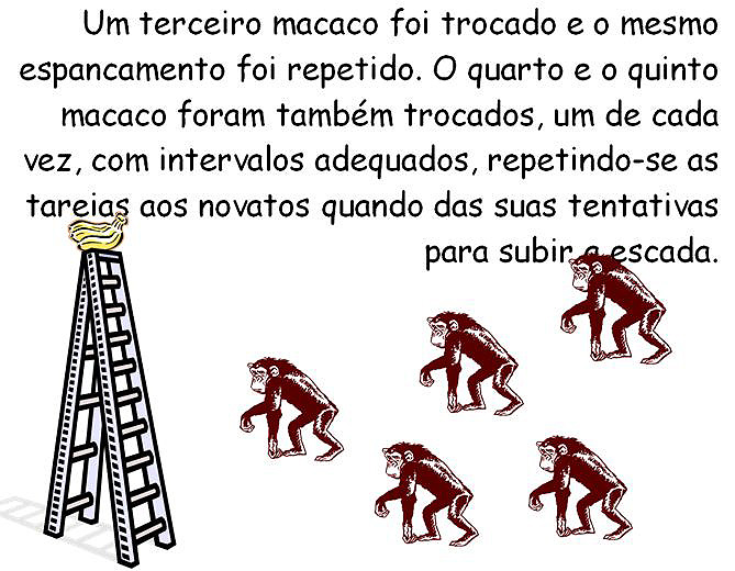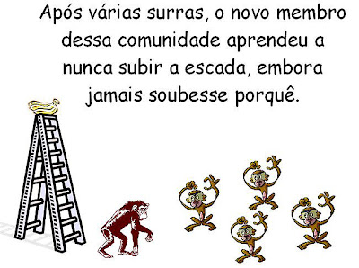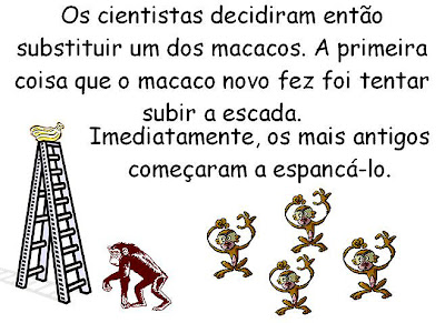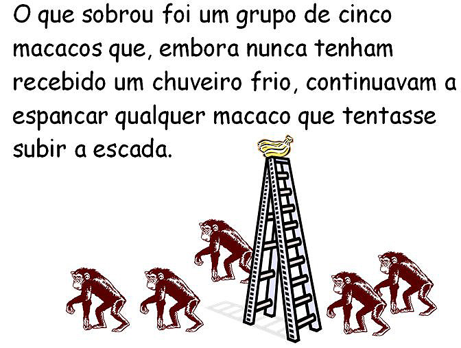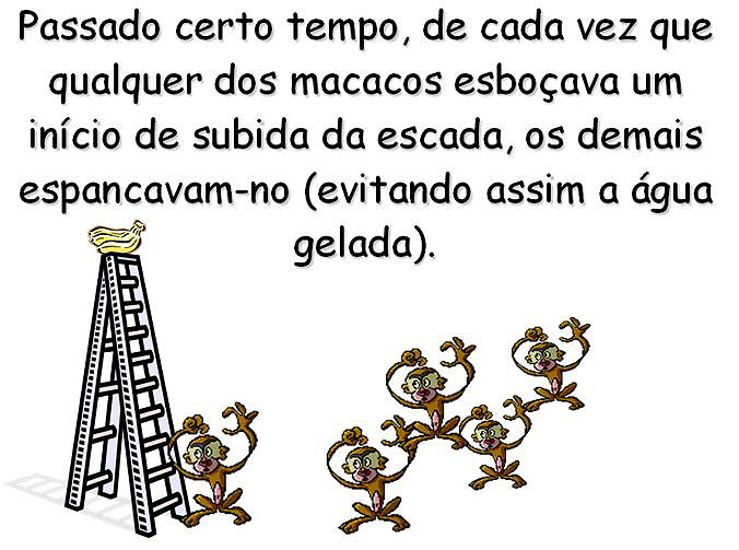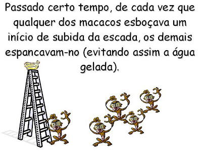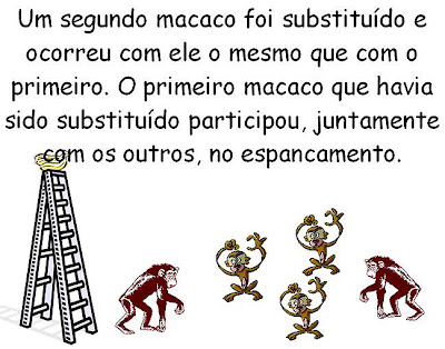 Ao longo dos anos das "civilizações" a sociedade, sem se aperceber, comporta-se como os macacos reagindo ao chuveiro de agua gelada da repressão, do poder da classe dominante e mantém essas atitudes auto-reprimindo-se, de forma que se substitui à repressão do poder.